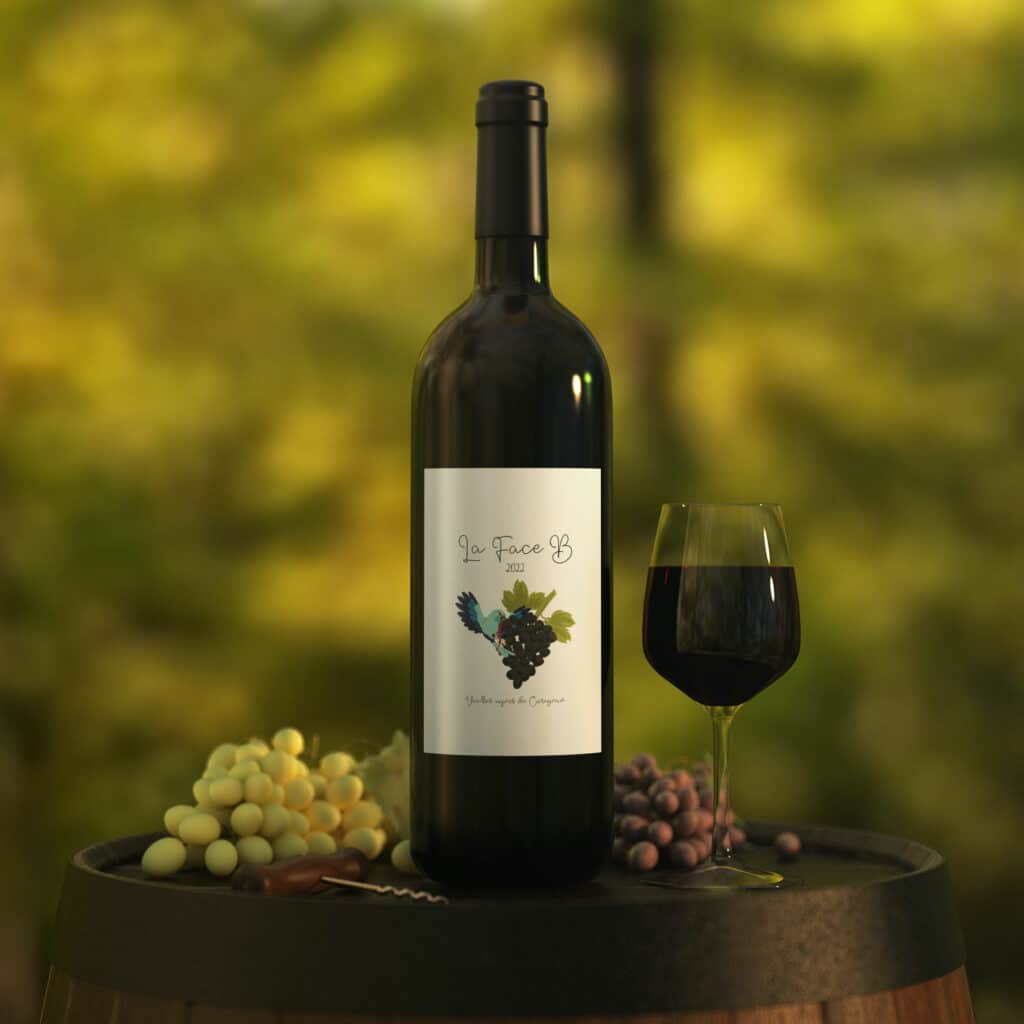 J’ai eu le plaisir de créer l’étiquette pour la bouteille de vin La Face B, issue de vieilles vignes de Carignan, portée par Antoine.